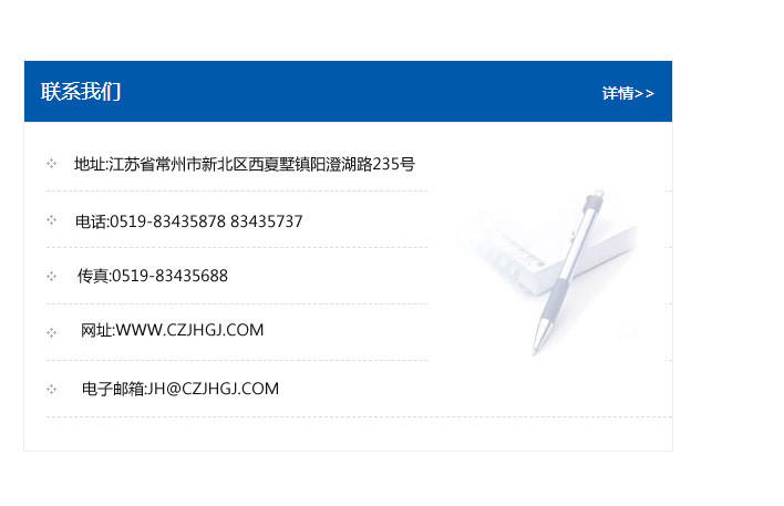 地址:常州市新北區(qū)友邦商務大廈1幢16、17層  電話:0519-85101652  傳真:0519-85112595  郵編:213022  網(wǎng)址:www_cz-jiayue_cn.2011ft.com  郵箱:xiajifengaa@163.com